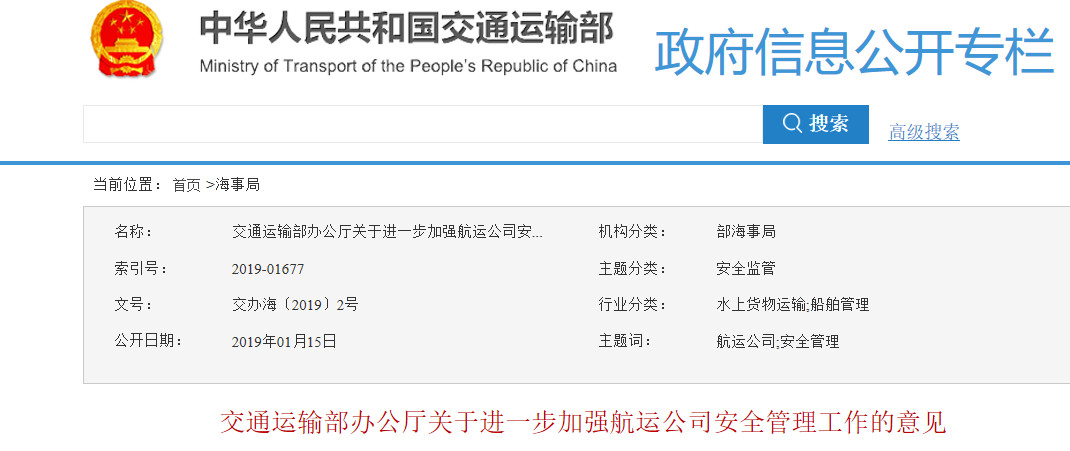 交通運輸部日前發(fā)布《關(guān)于進一步加強航運公司安全管理工作的意見》(以下簡稱《意見》),要求各級水路運輸管理部門和海事管理機構(gòu),嚴厲打擊船舶“假登記”“假光租”和國內(nèi)水路運輸“掛靠”經(jīng)營、船舶管理公司“代而不管”、內(nèi)河船舶非法從事海上運輸?shù)冗`法違規(guī)行為。